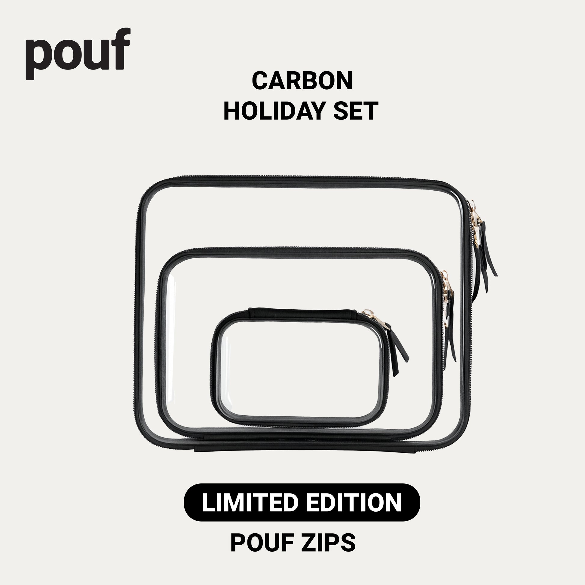 Bring order to the holiday chaos with the limited-edition Pouf Holiday Zips, a special set of 3 clear organizers in four joyful colorways. Whether you’re packing gifts, sorting decor, or prepping for travel, these cheerful zips make it easy to stay organized and in the spirit.