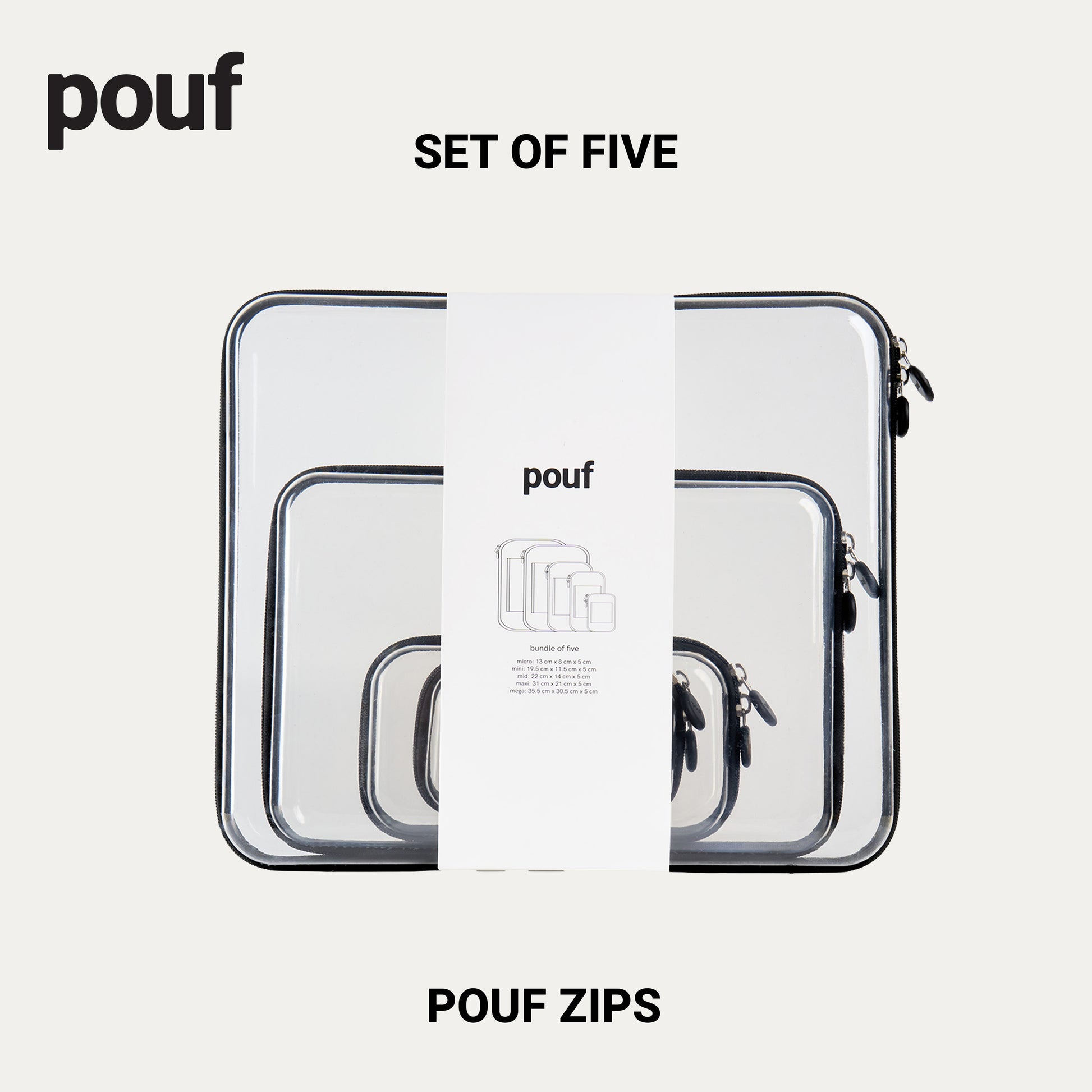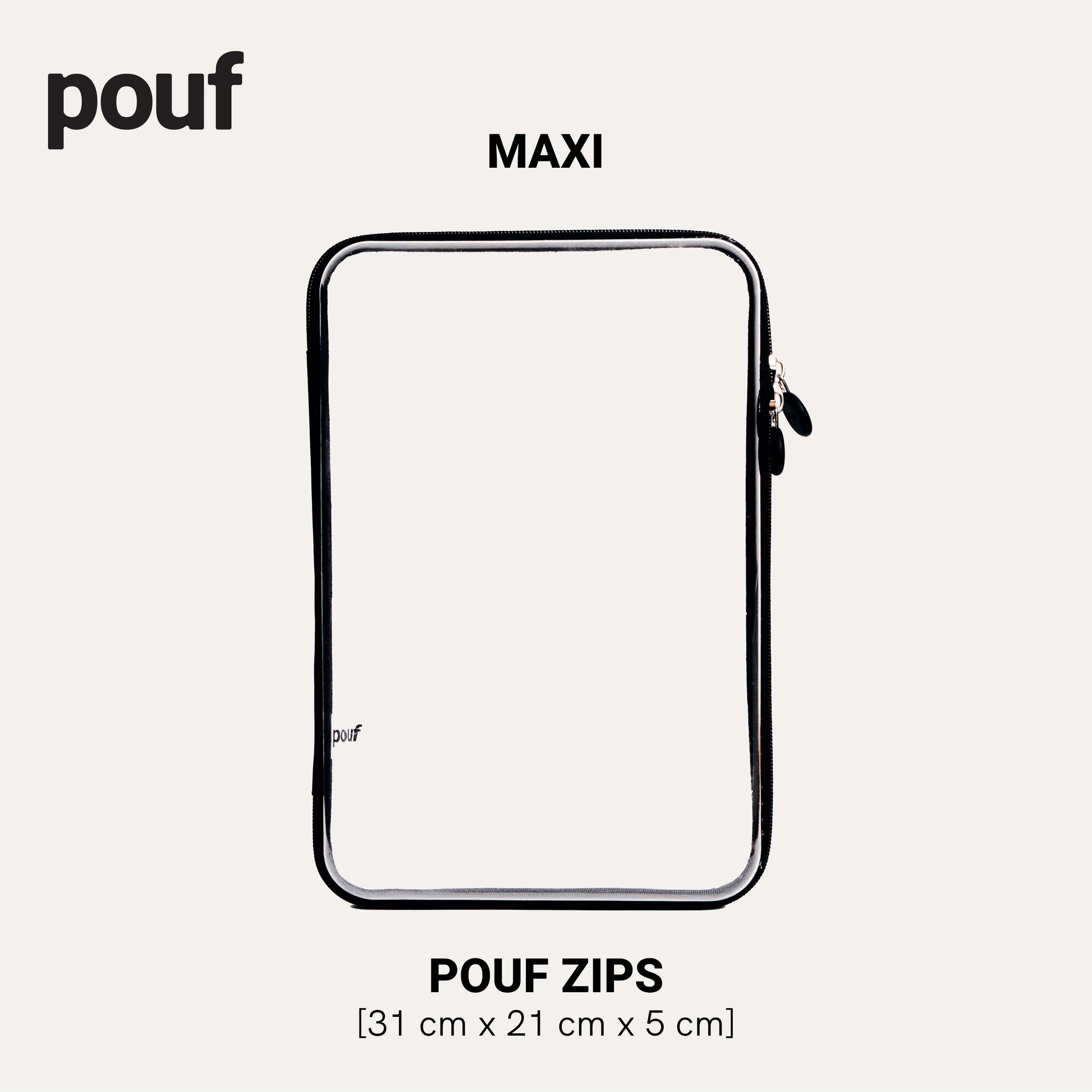 See everything, grab anything. PoufZips transparent design means you’ll always know what’s inside without even opening it. The large, round zipper is easy to grasp, making it accessible and user-friendly for everyone.